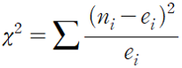 기대도수는 카이제곱 분포를 따른다. 이때 기대도수란 이론적으로 각 범주에 포함될 것으로 기대되는 개체의 수다. 가령 민주당과 미래당, 개혁당에 대한 지지율을 검정하는 경우, 민주당의 기대도수란 조사에 응답한 사람의 1/3이다. 기대도수는 ei로 표기하며, ei=nP(x)이다. 적합도 검정의 검정통계량은 실제 관측도수에서 기대도수를 뺀 값인데, 다음과 같으며 자유도가 n집단-1인 카이제곱 분포를 따른다.