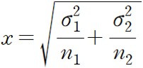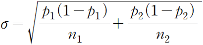 같은 모집단에서 유래한(영가설에 따르면) 두 표본평균의 차이는 평균이 0이고 표준편차가 σ/√n인 정규분포를 따른다. 이때 n은 두 집단의 합으로, 두 집단의 표본수를 모두 더해야 한다. 여기에 더해 두 집단의 분산이 다른 경우도 상정할 수 있다. 이 경우 두 집단의 분산을 더해야 한다. 따라서 차이검정을 실시하는 경우 차이검정 평균의 분산은 다음과 같다.